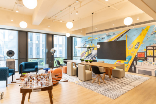 走进前海首个人工智能OPC社区,第一印象便是颠覆传统。这里没有冷静克制的格子间,取而代之的是大面积的色块拼接、艺术涂鸦墙,随处可见的静音舱、交流区、灵感实验室,以及“日咖夜酒”休闲吧。