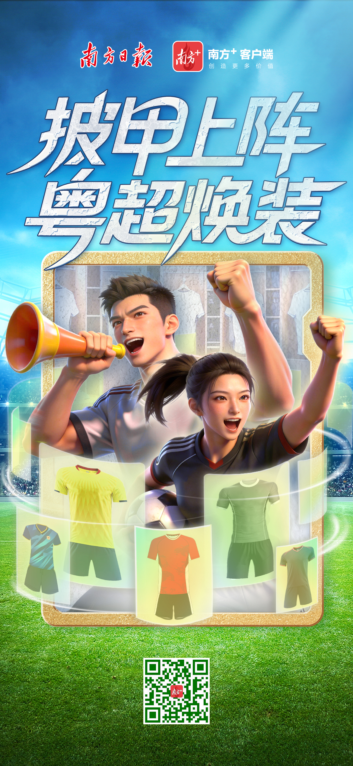 即日起,南方日报、南方+推出《披甲上阵,粤超焕装》互动H5,让你足不出户,也能身披主队战袍,成为赛场外最耀眼的“第十二人”!