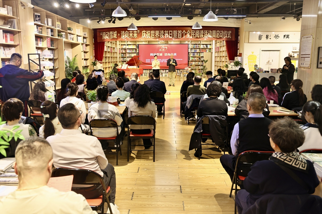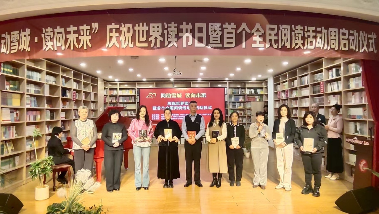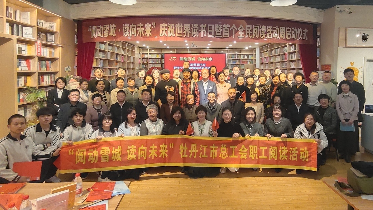 4月19日,由中共牡丹江市委宣传部、牡丹江市总工会、牡丹江市文联联合主办,牡丹江读书会、新华书店承办的“阅动雪城·读向未来”世界读书日暨首个全民阅读活动周启动仪式,在新华书店举行。黑龙江教育出版社、黑龙江出版传媒股份有限公司嘉宾,以及读书会书友、领读人代表、职工阅读推广志愿者等百余人参加活动。